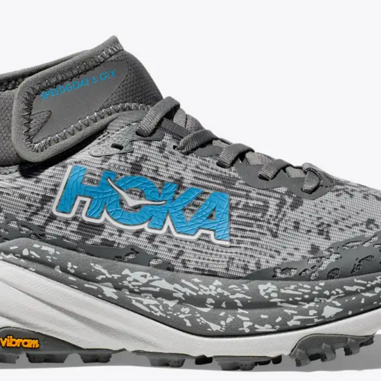 The Speedgoat 6 Mid GTX is built with the same trust-inspiring waterproof GORE-TEX membrane as before—but now with a more flexible, running-friendly collar. Grounded in Vibram® Megagrip with Traction Lug for enhanced bite on loose soil, this trail icon employs a foot-cradling heel bolster, lightweight, responsive midsole compound, and a protective toe rand for charging through the rough stuff. Bring it, weather.